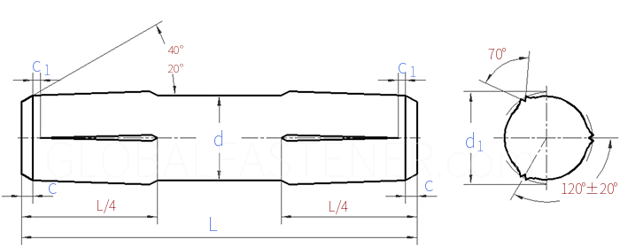 Reverse-taper Grooved Pins - One Quarter-length Progressive Grooves on Both Sides, Pin with Rounded Ends