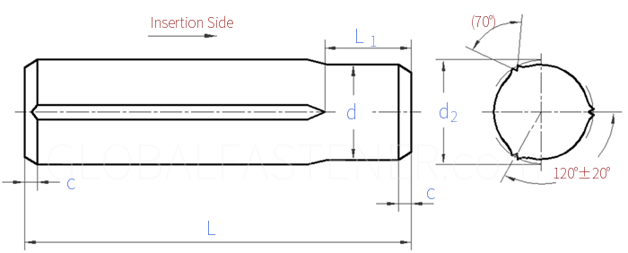 Grooved Pin, Full Length Parallel Grooved with Chamfer
