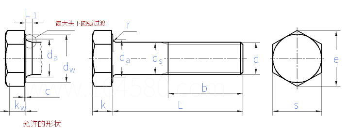 六角头螺栓 细牙 产品等级:A级和B级 [Figure 3]