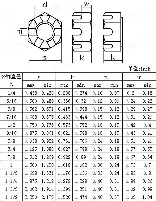 六角开槽螺母  [Table 5] (ASTM A563 / F594 / F467)